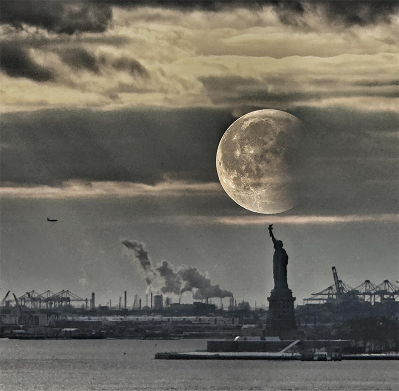 Ella no alza la antorcha, alza la esperanza, y la luna, testigo milenario, vigila en silencio el sueño de millones: ser libres, ser vistos, ser alguien.